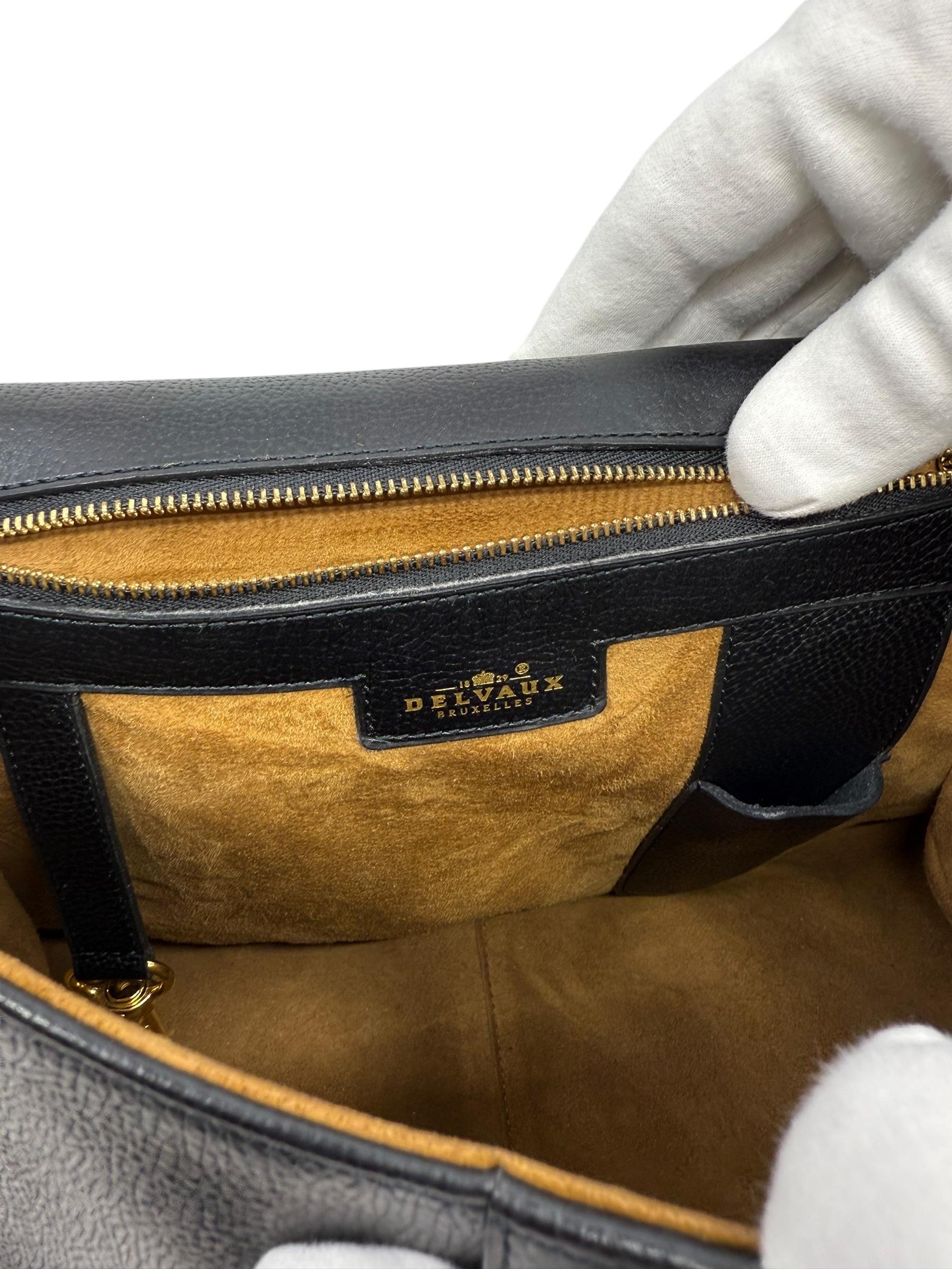 Achteraan is een handig ritsvak voorzien, samen met de gekende Delvaux-details: sleutelbevestiger en pennenhouder.