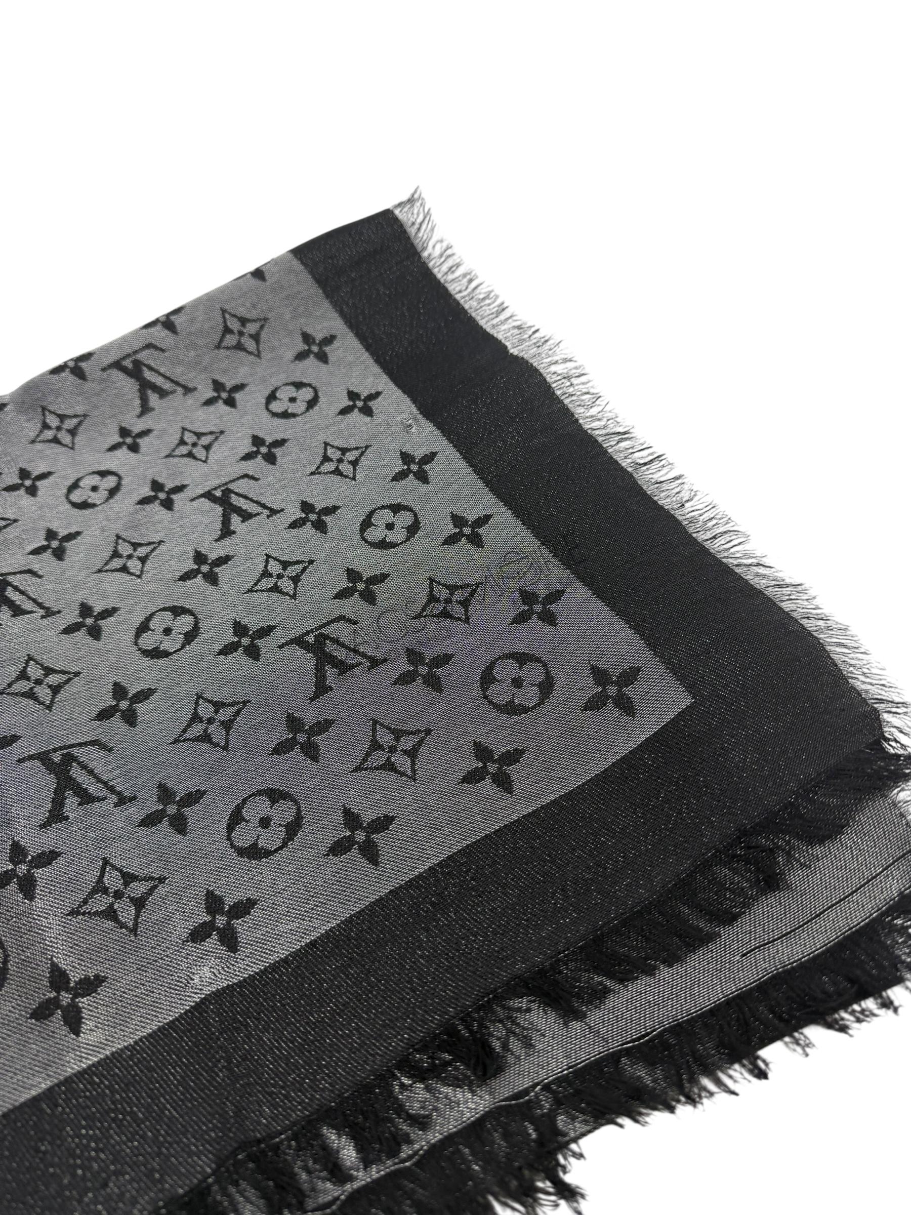 Deze luxueuze Louis Vuitton carré sjaal in de iconische monogram Shine noir uitvoering is de perfecte partner voor al uw uitstappen.